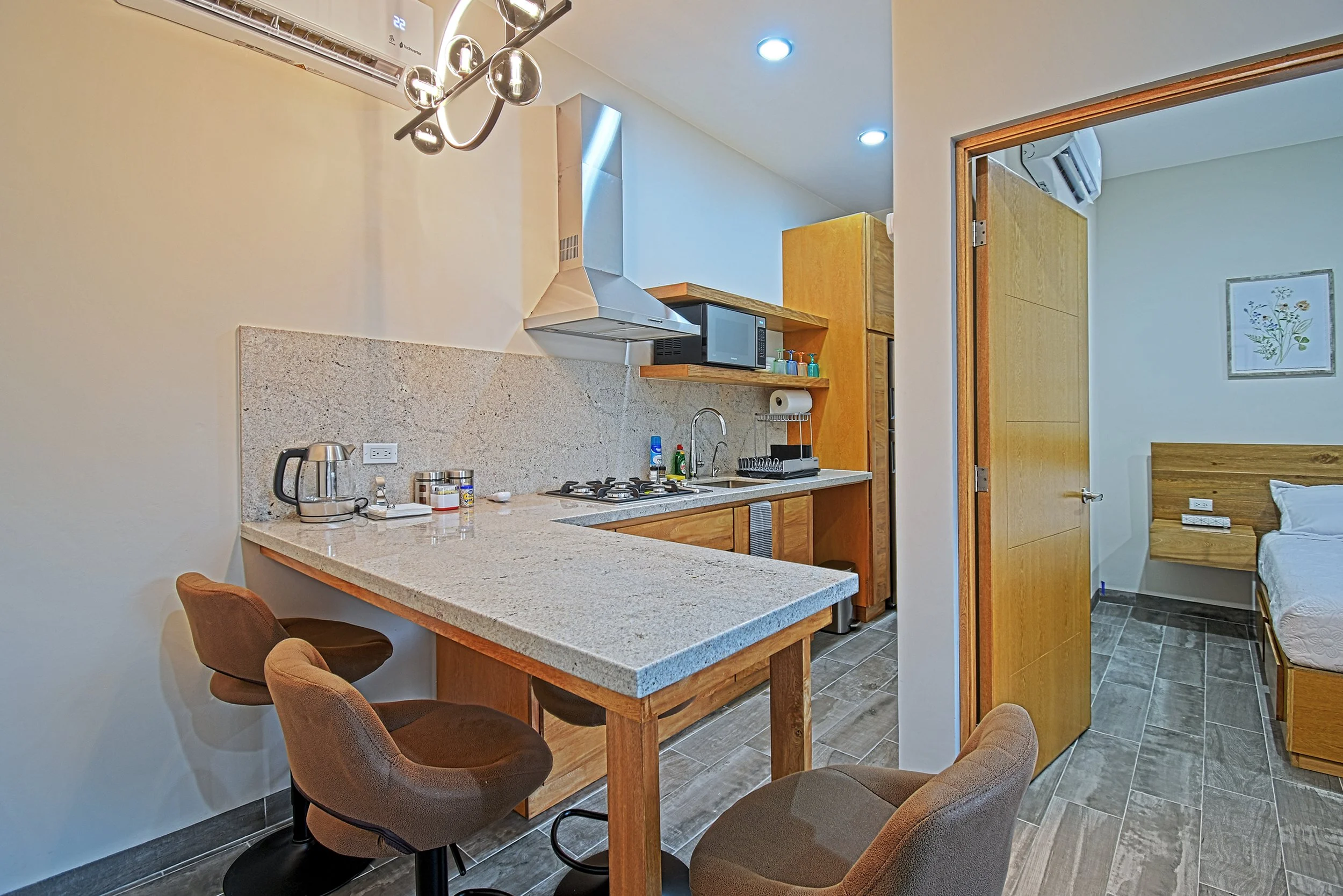 The unit features two bedrooms, a fully equipped kitchen, and well-optimized spaces designed for hosting guests, with a modern style that is both attractive and easy to maintain, ideal for efficient rental operation.